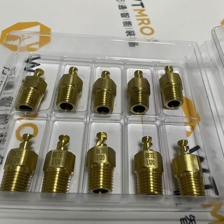 美國進口BETE 4732 1/4L120為螺旋空心錐噴嘴,整體黃銅一體成型,1/4英寸外螺紋,無內部零件,結構緊湊。